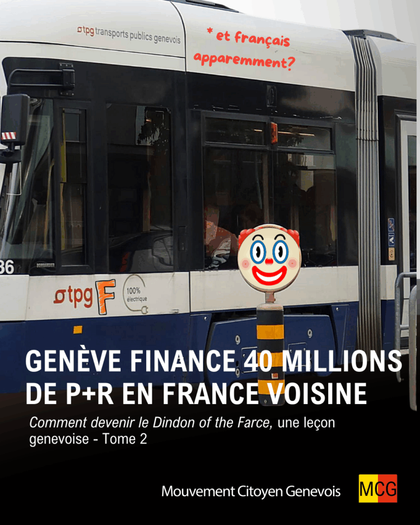 Jeudi 27 novembre, ce gouvernement qui n’arrive pas à boucler les budgets, annonce qu’il va dépenser 40 millions supplémentaires pour financer des parkings P+R en France voisine. Le MCG s’y opposera catégoriquement et ira jusqu’au référendum.