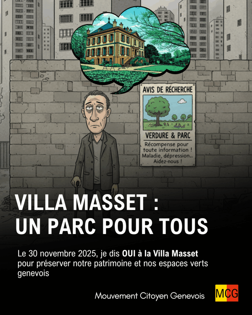 Le Mouvement Citoyen Genevois (MCG) appelle à voter OUI le 30 novembre 2025 pour l’acquisition de la Villa Masset par la Ville de Genève
