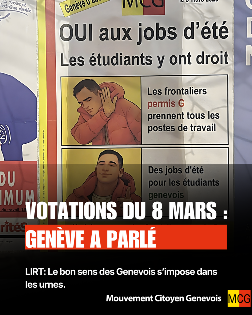 | Les électeurs genevois ont fait preuve de bon sens en acceptant à plus de 60% la nouvelle loi (LIRT) sur les jobs d’été pour les étudiants, qui disposeront ainsi de l’opportunité d’entrer dans le monde professionnel. La gauche dogmatique s’opposait à cette loi parce qu’elle prévoit une exception au sacro-saint salaire minimum, qui favorise les frontaliers permis G. Les électeurs genevois se sont montrés plus raisonnables. En effet face à la concurrence des travailleurs frontaliers il faut donner une chance aux étudiants genevois pour qu’ils ne soient pas exclus du marché du travail. C’est une défaite pour le lobby pro-frontalier de gauche et une victoire pour les résidents genevois. |